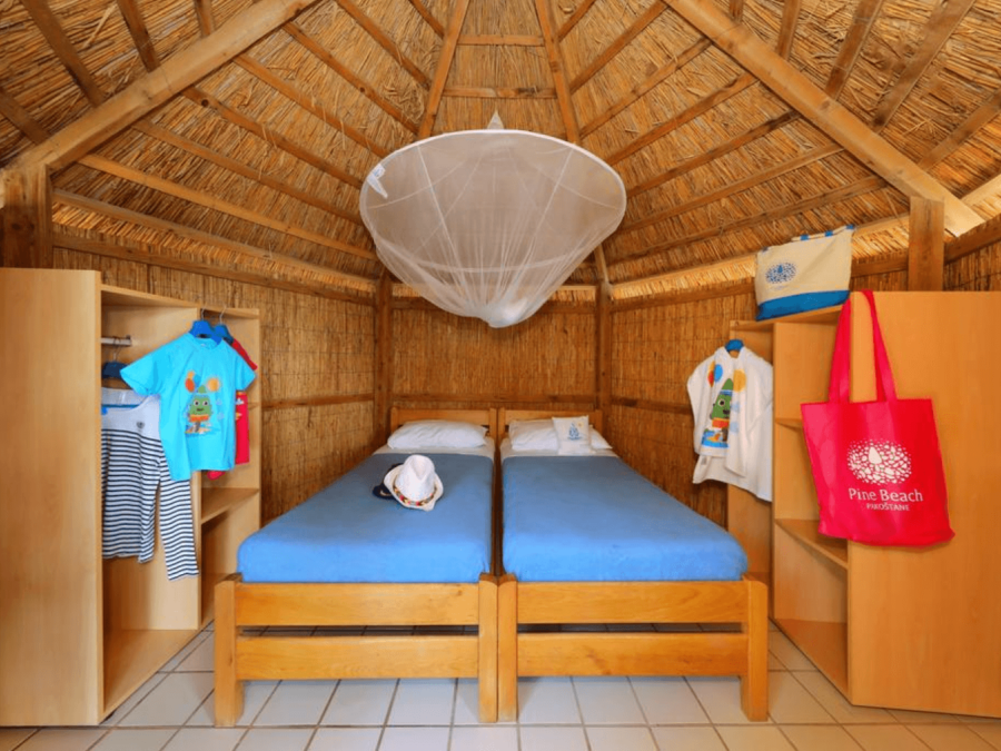 Наші затишні бунгало розташовані в чарівному сосновому лісі, де ваша дитина зможе насолоджуватися природою і відчувати себе в безпеці та комфорті. Всі необхідні зручності знаходяться у сучасному санітарному блоці, який розташований зовсім поруч з нашими будиночками.