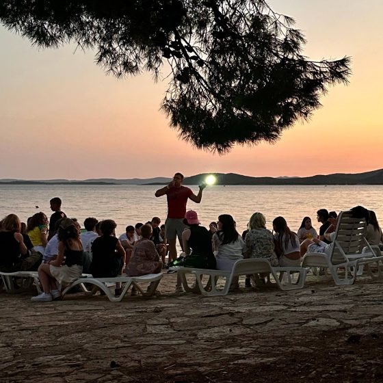 Відчуйте кришталево чисту воду Адріатичного моря, насолоджуйтеся свіжим морським повітрям в тіні соснового лісу, насолоджуйтесь теплим піском, блиском яскравого сонця і чудовою компанією. Приєднуйтесь до нашого англомовного міжнародного морського кемпу в Хорватії!